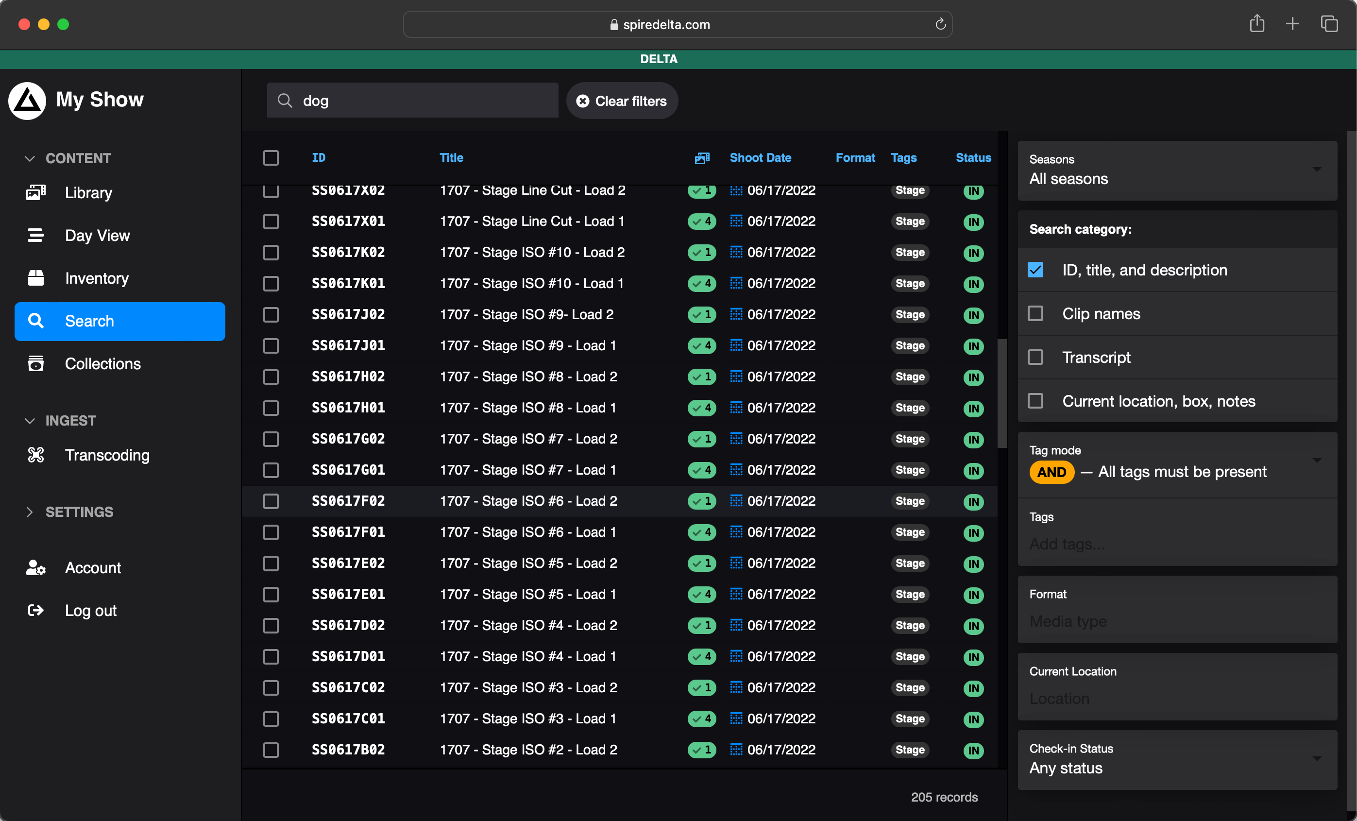 Monitor the progress of your media as it moves from camera ops into the Spire pipeline. With Day View, visualize all your footage on a calendar by shoot-time and date.